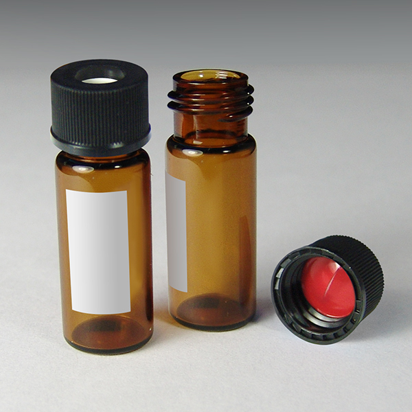 Contains: 10mm, 12 x 32 2mL Amber Glass Wide Mouth Screw Vials with Marking Spots and 10mm Black Screw Caps with Pre-slit Silicone/PTFE Liners
